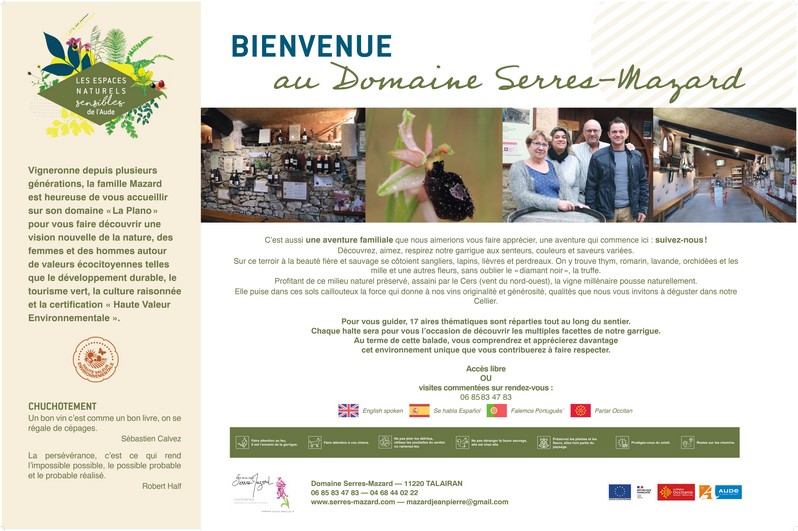 Plongez au cœur de l’authenticité des Corbières avec une balade vigneronne inoubliable sur le Sentier des Garrigues. Niché dans un environnement typique et préservé, ce sentier offre une expérience sensorielle, où la nature et le vin se rencontrent harmonieusement.
